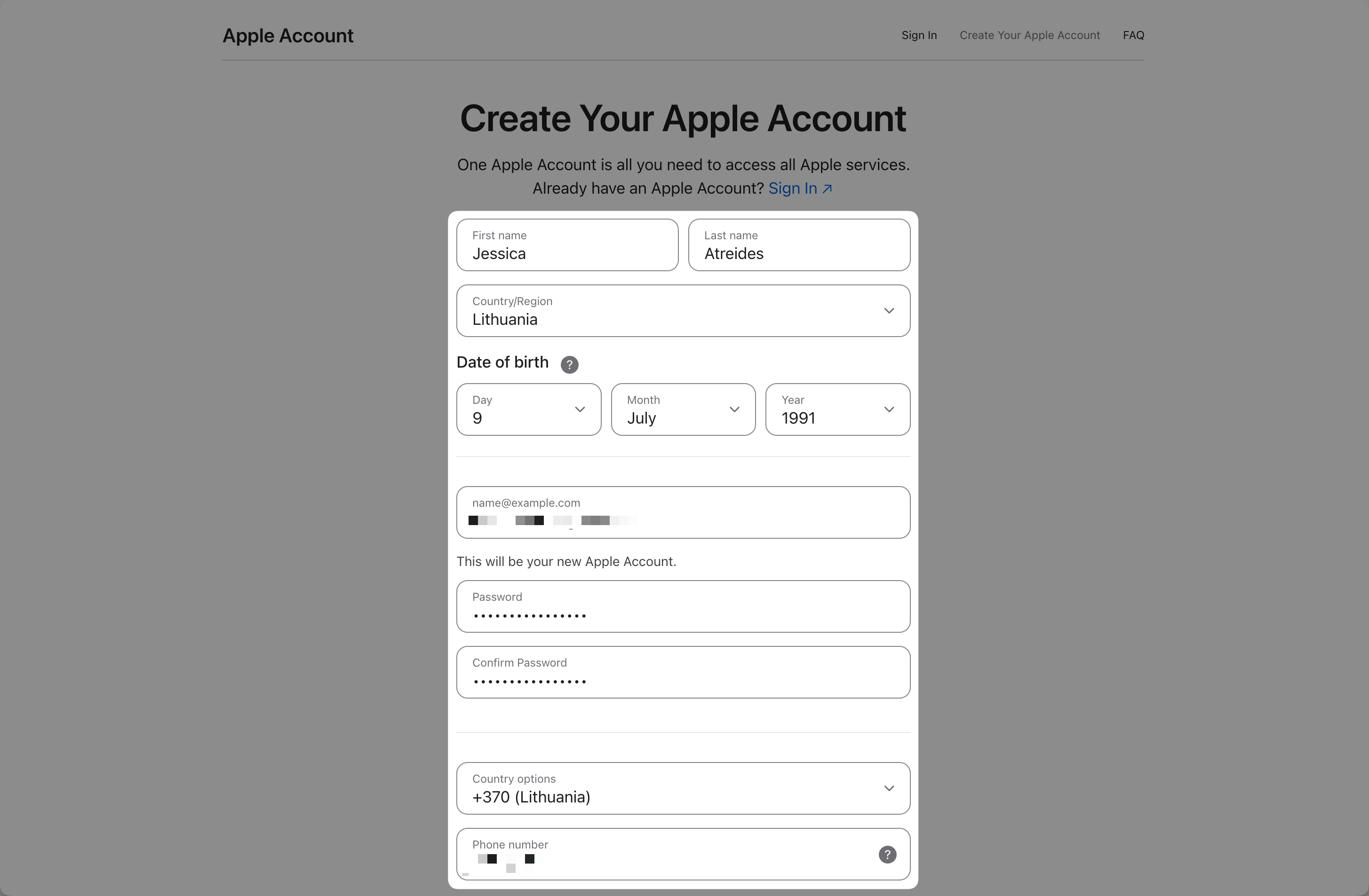 Перейдите на страницу Создание Аккаунта Apple.