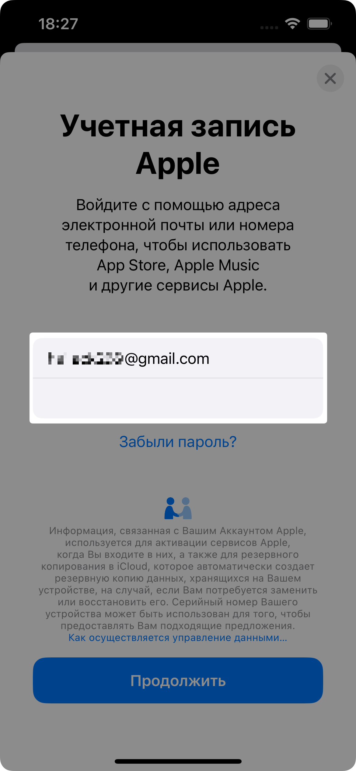 Нажмите Вход с учетной записью Apple.