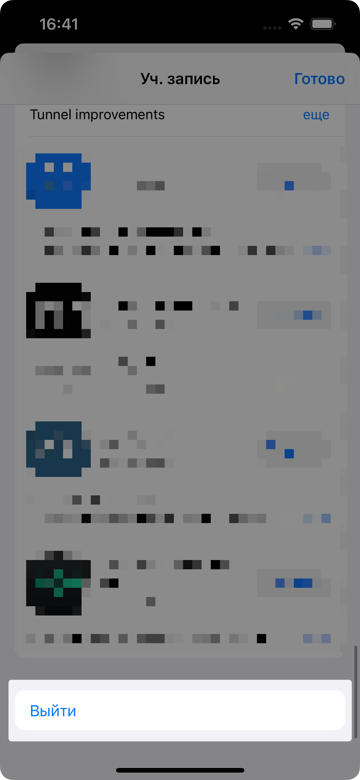 В профиле прокрутите вниз и нажмите Выйти.