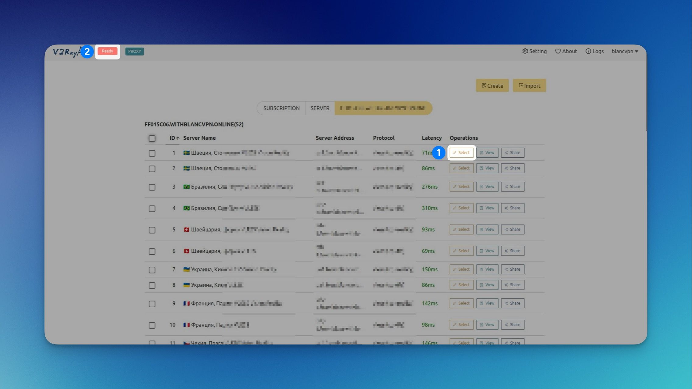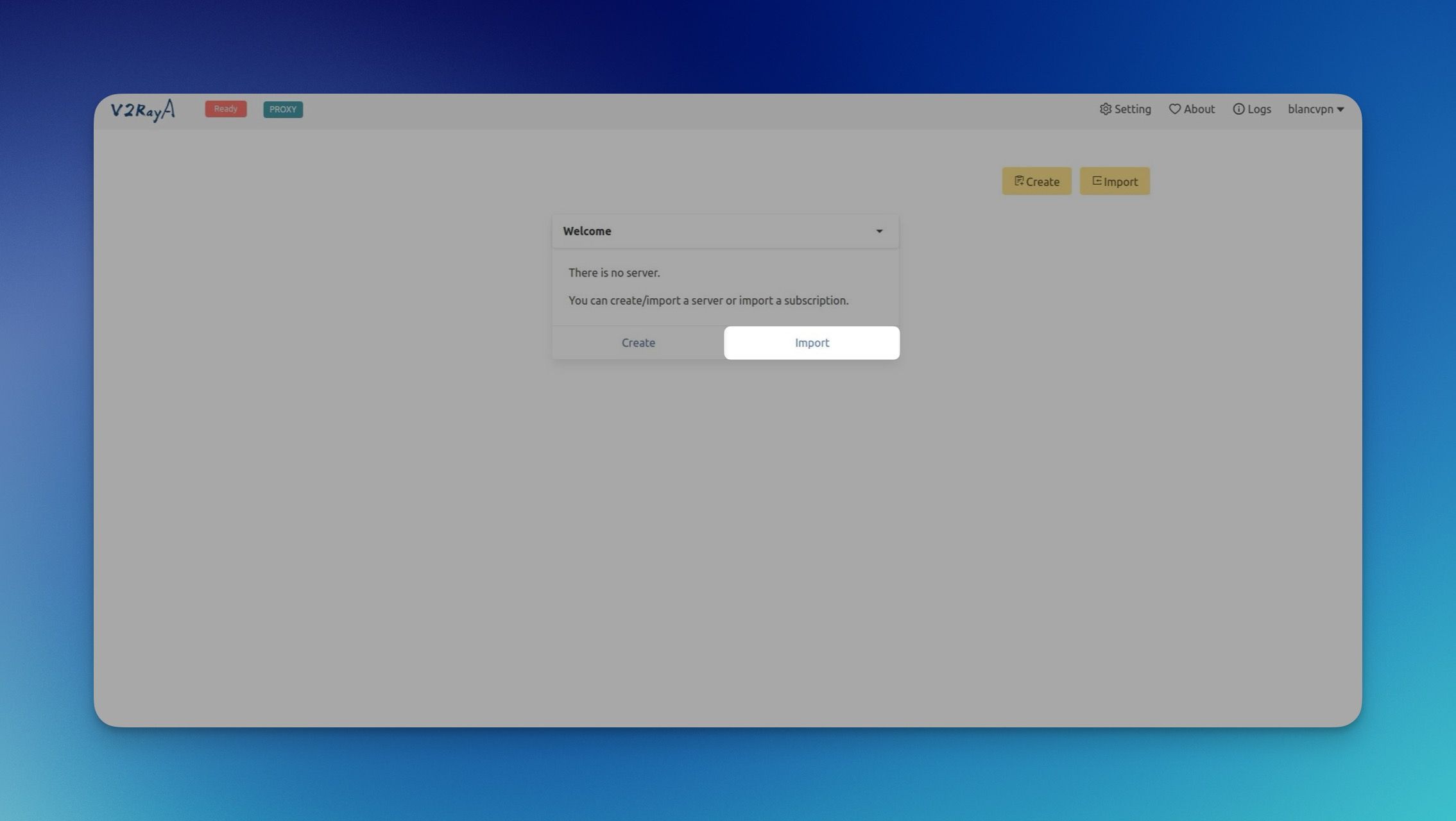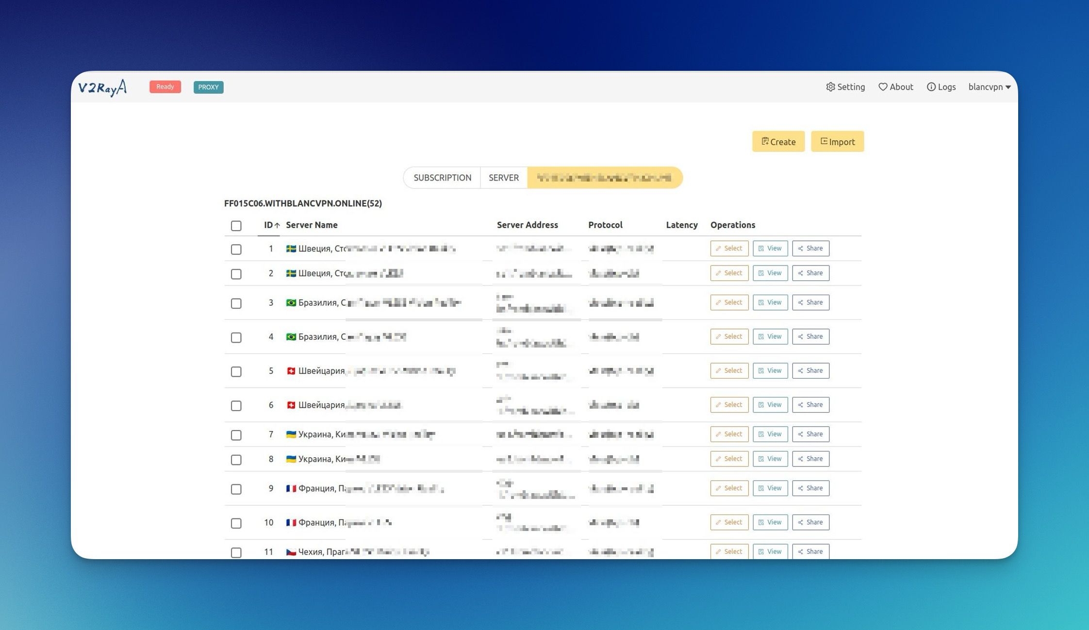 Нажмите Import (Импортировать), чтобы импортировать подписку.
