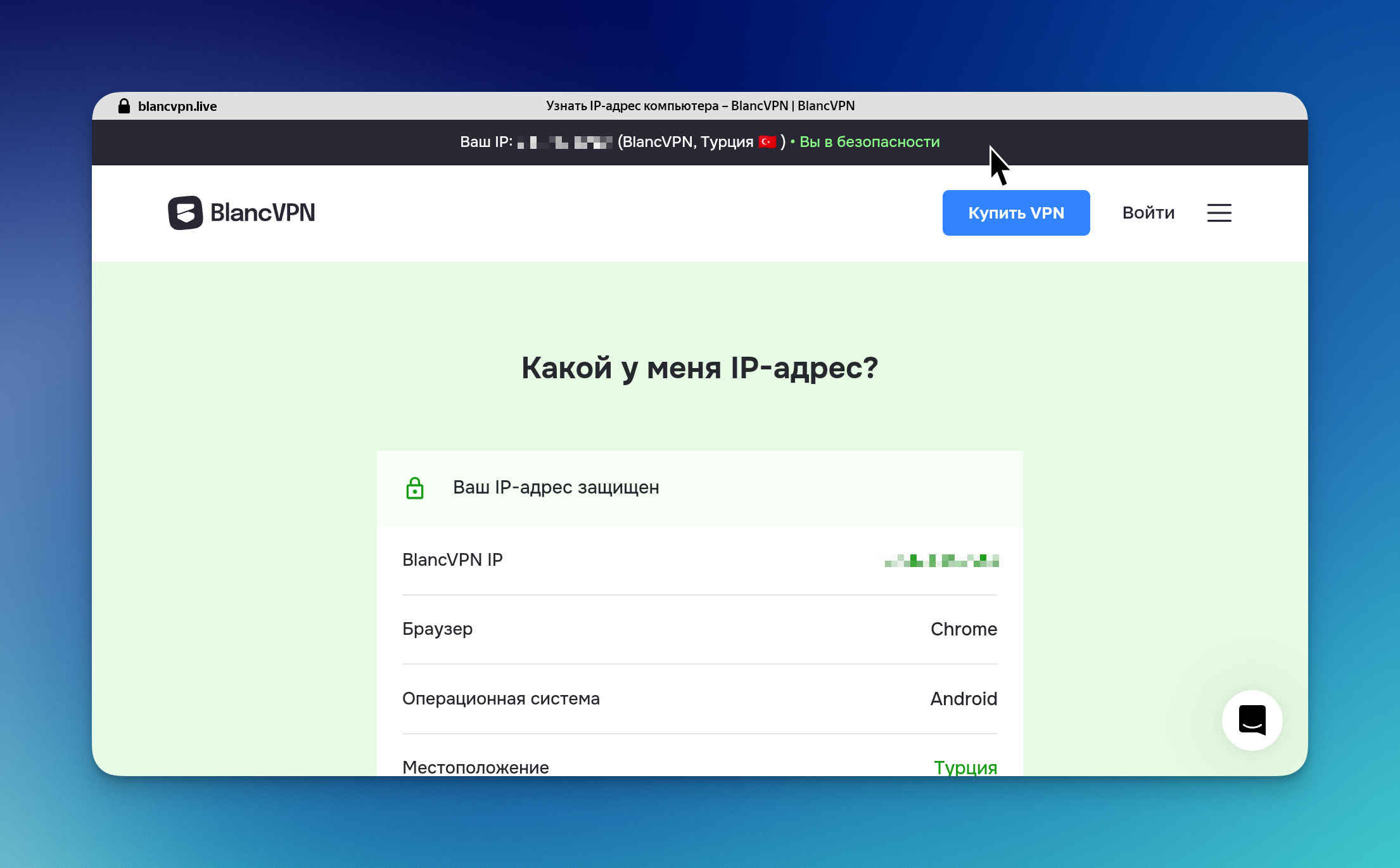 При активном VPN откройте браузер и найдите в поиске страницу Проверка IP BlancVPN.